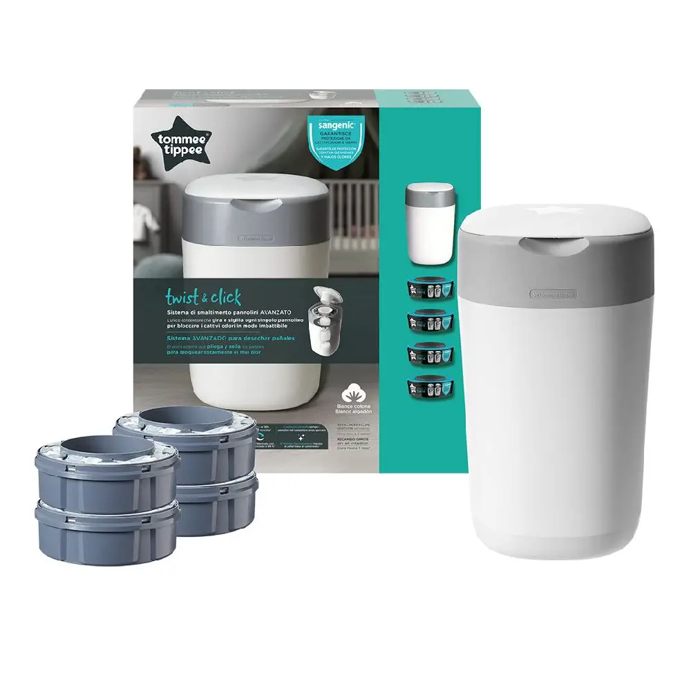 Contenitore Getta Pannolini Tommee Tippee Sangenic Twist & Click Bianco + Kit 4 Ricariche