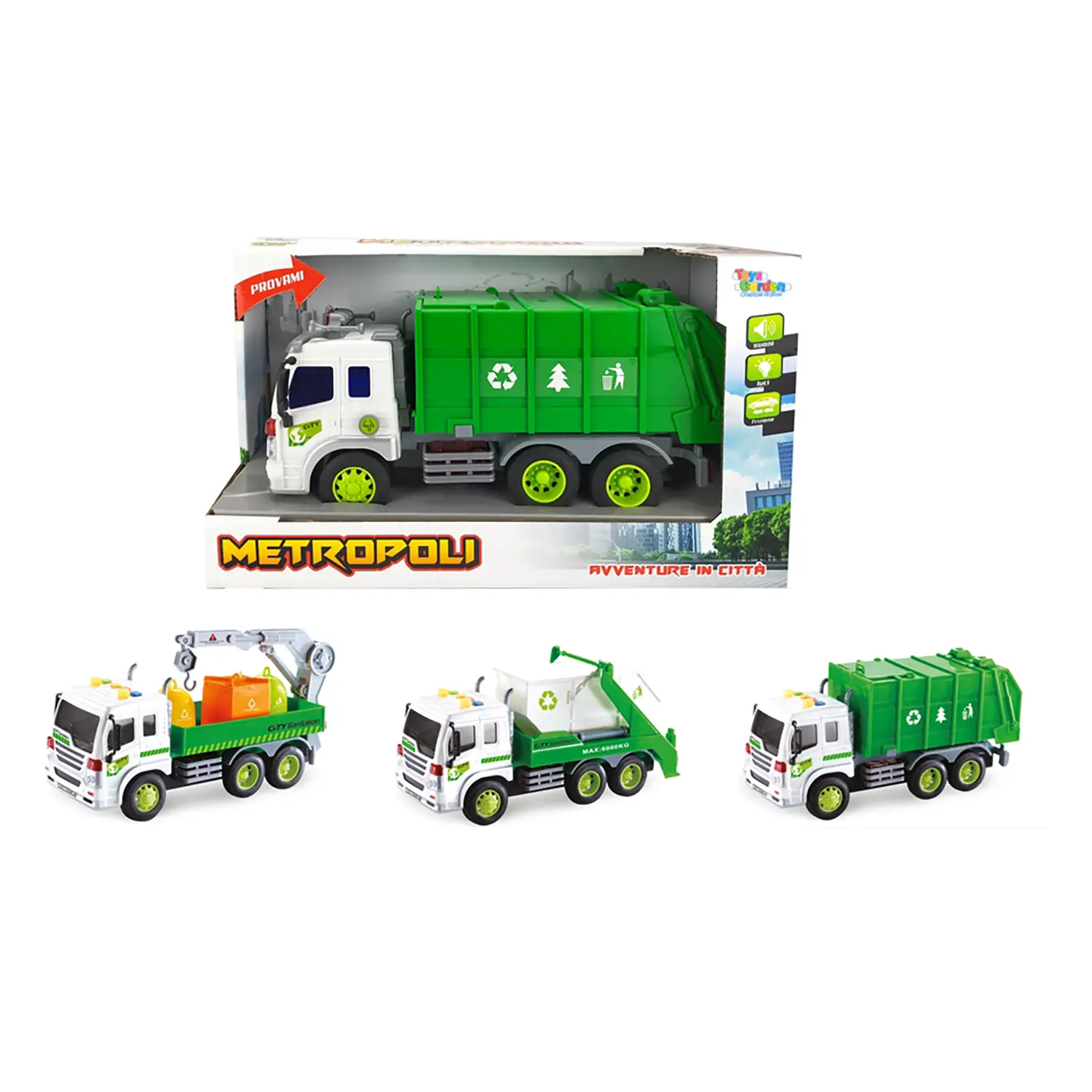 Disponibile in tre varianti di camion ecologici per un gioco ancora più vario e coinvolgente.