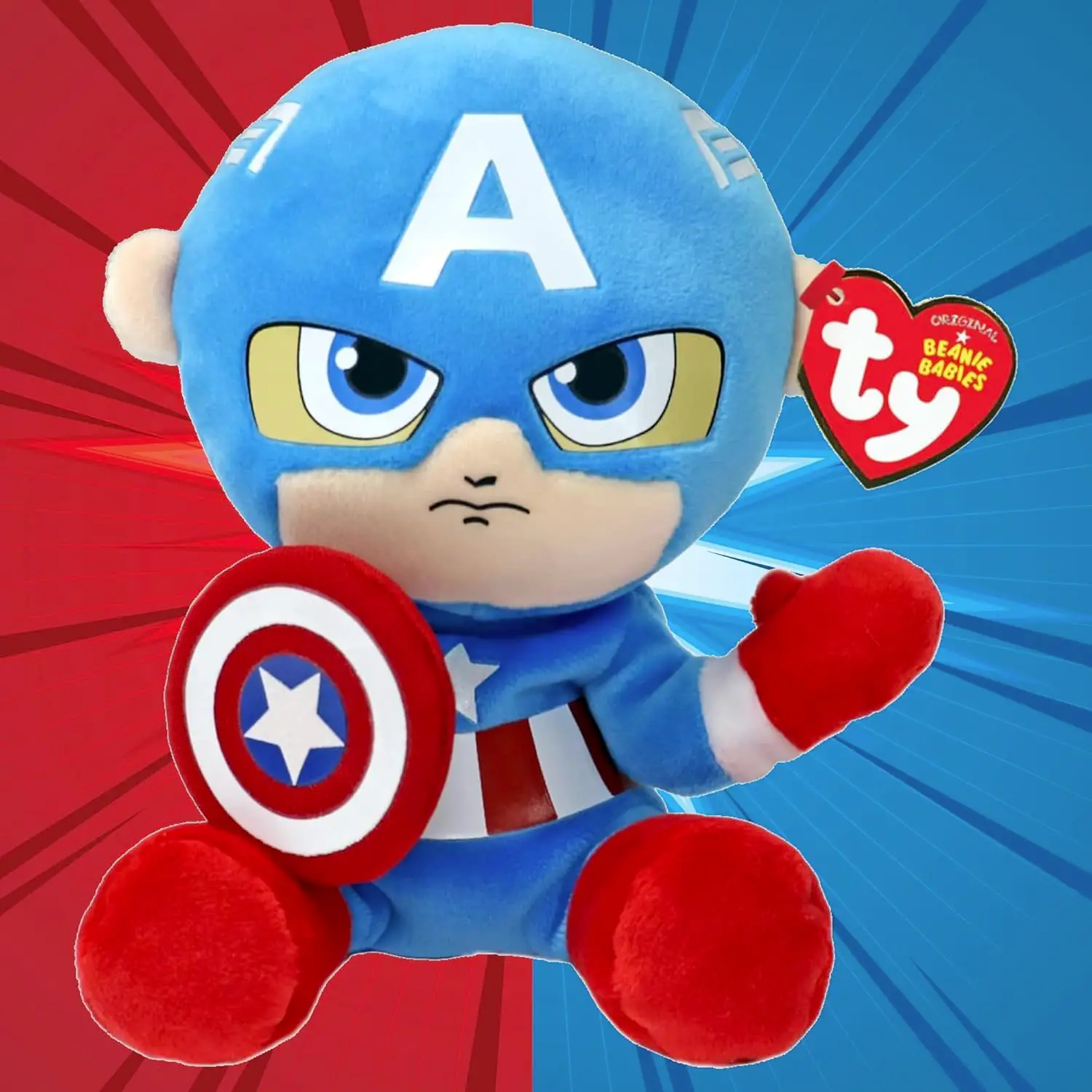 - ✅ Peluche TY Captain America Marvel 20 cm con design floppy morbido