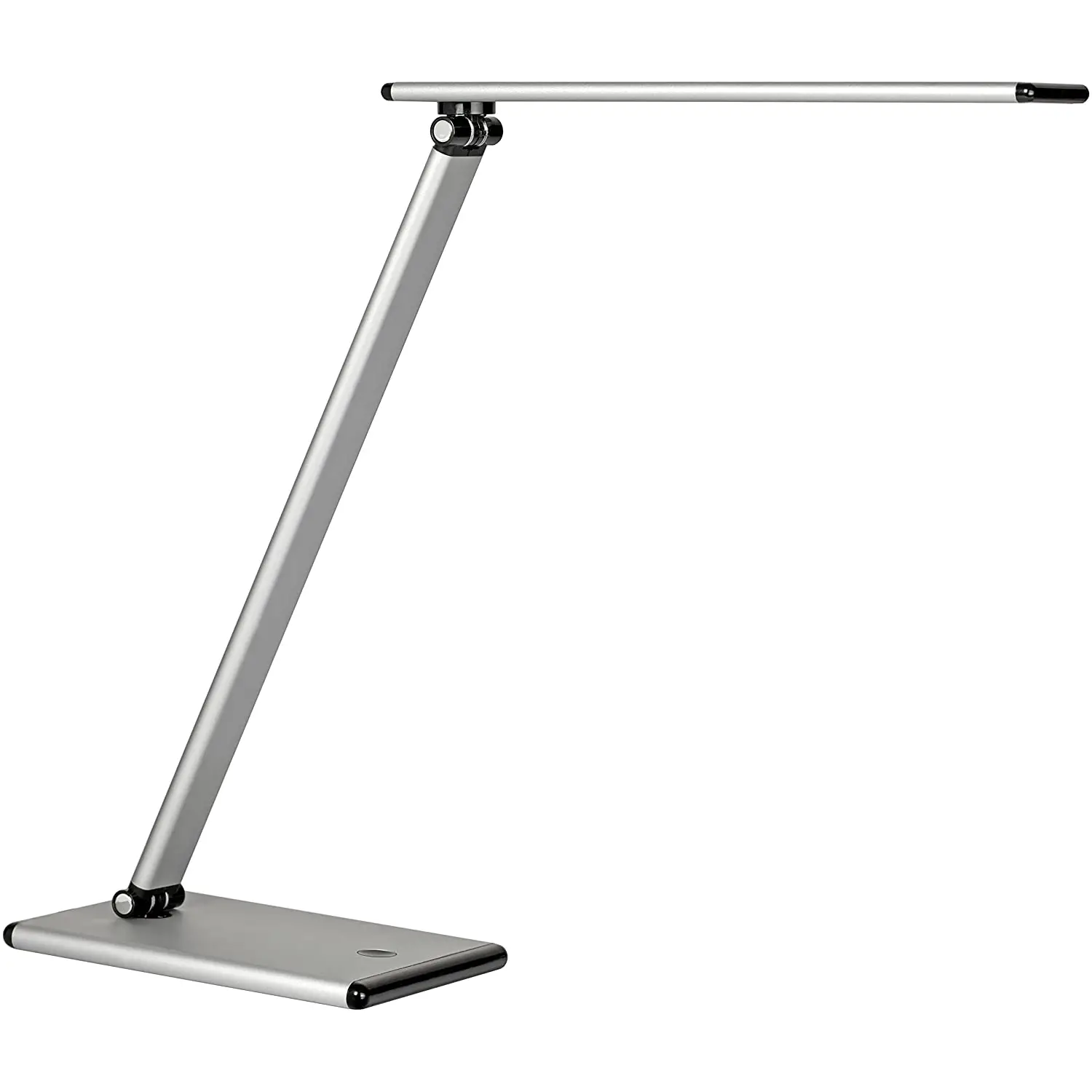 Lampada con linee sottili e ordinate; la testa ha uno spessore inferiore a 1 cm che le conferisce un aspetto elegante e moderno; la testa e il sono braccio rotabili; la base ha una elevata stabilità