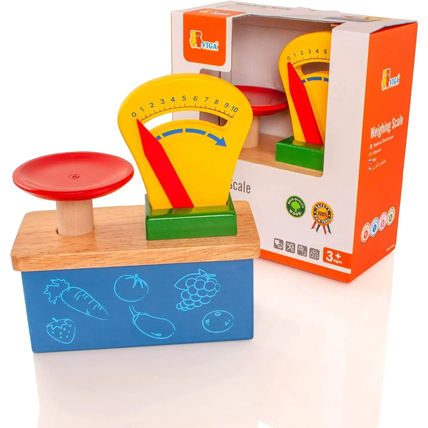 Permette ai bambini di pesare frutta e verdura, comprendere il valore del denaro e le basi della matematica, incoraggiando il ragionamento e le abilità logiche.