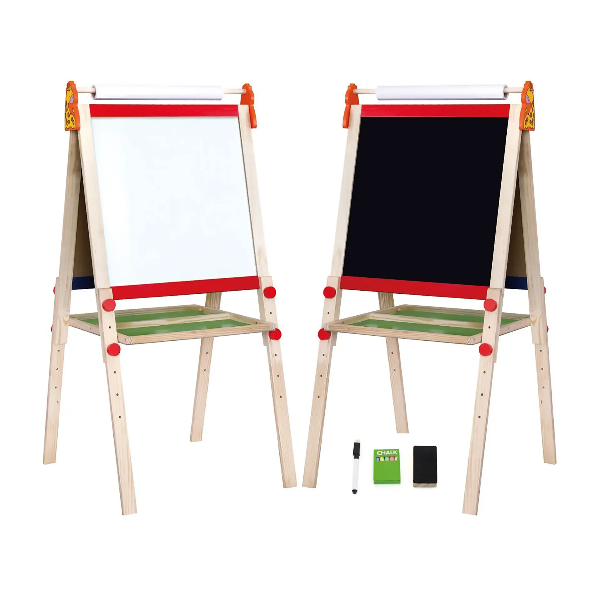 Multifunzionale: Il cavalletto è dotato di due diverse lavagne, una nera per gessetti e una bianca magnetica per pennarelli cancellabili, che possono essere utilizzate per disegnare, scrivere o fare esercizi. Inoltre, grazie al supporto per carta in rotolo, può essere utilizzato anche come tavolo da disegno.