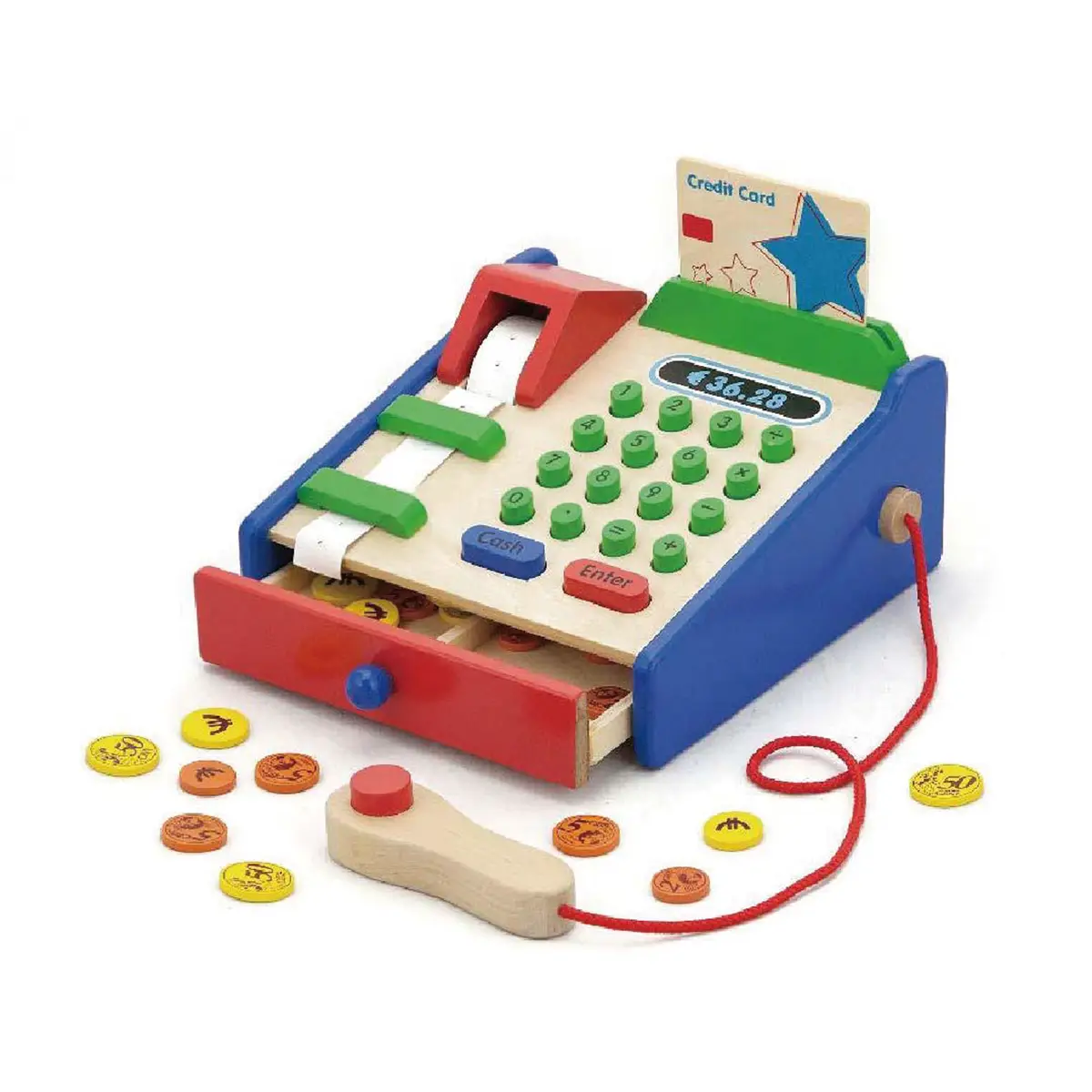 • ✅ Registratore di cassa in legno di faggio sicuro e atossico, ideale dai 3 anni in su.