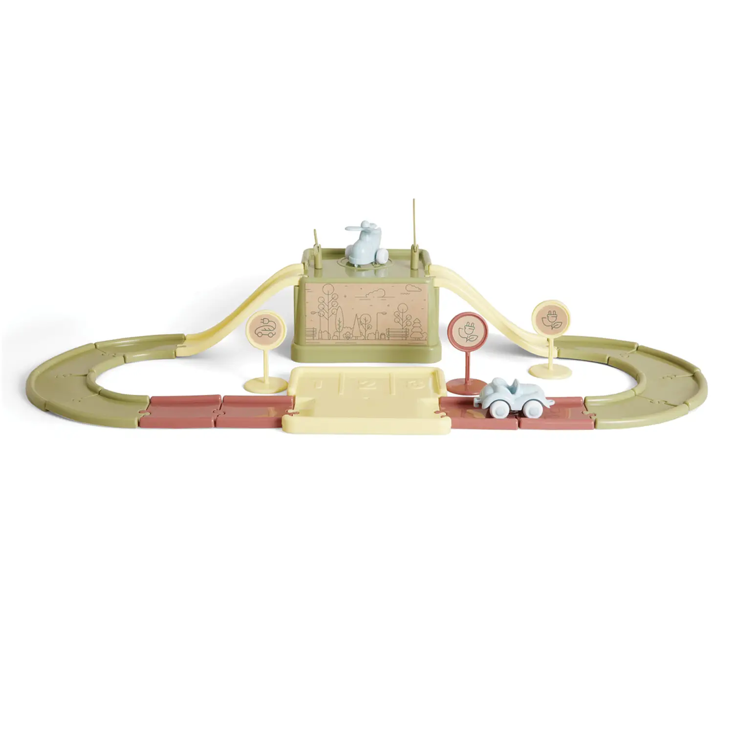 Pista con Stazione Ricarica Veicoli Elettrici, Plastica Ecoline, Include Auto Elicottero e Segnali