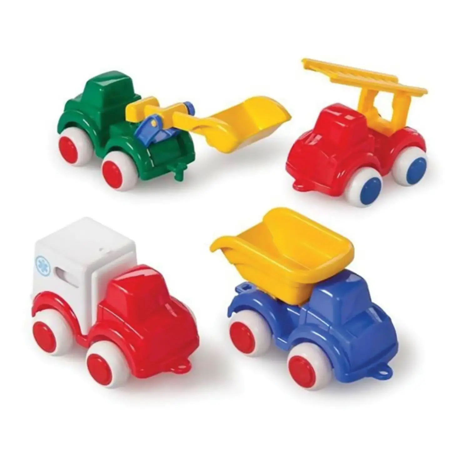 Materiali Sicuri: Progettati in plastica morbida e flessibile, questi veicoli assicurano che il gioco sia sempre sicuro. Gli spigoli smussati e l’assenza di parti piccole riducono il rischio di lesioni.