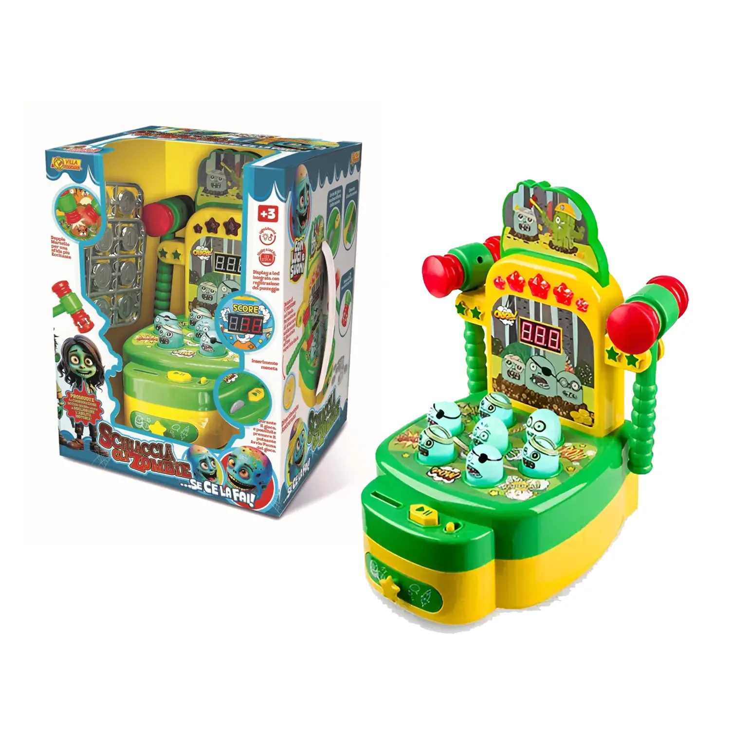 Gioco arcade interattivo per bambini dai 3 anni Schiaccia gli Zombi è un gioco elettronico coinvolgente ispirato alle classiche postazioni arcade. I bambini devono colpire gli zombie che si illuminano, migliorando i riflessi e divertendosi in sicurezza.