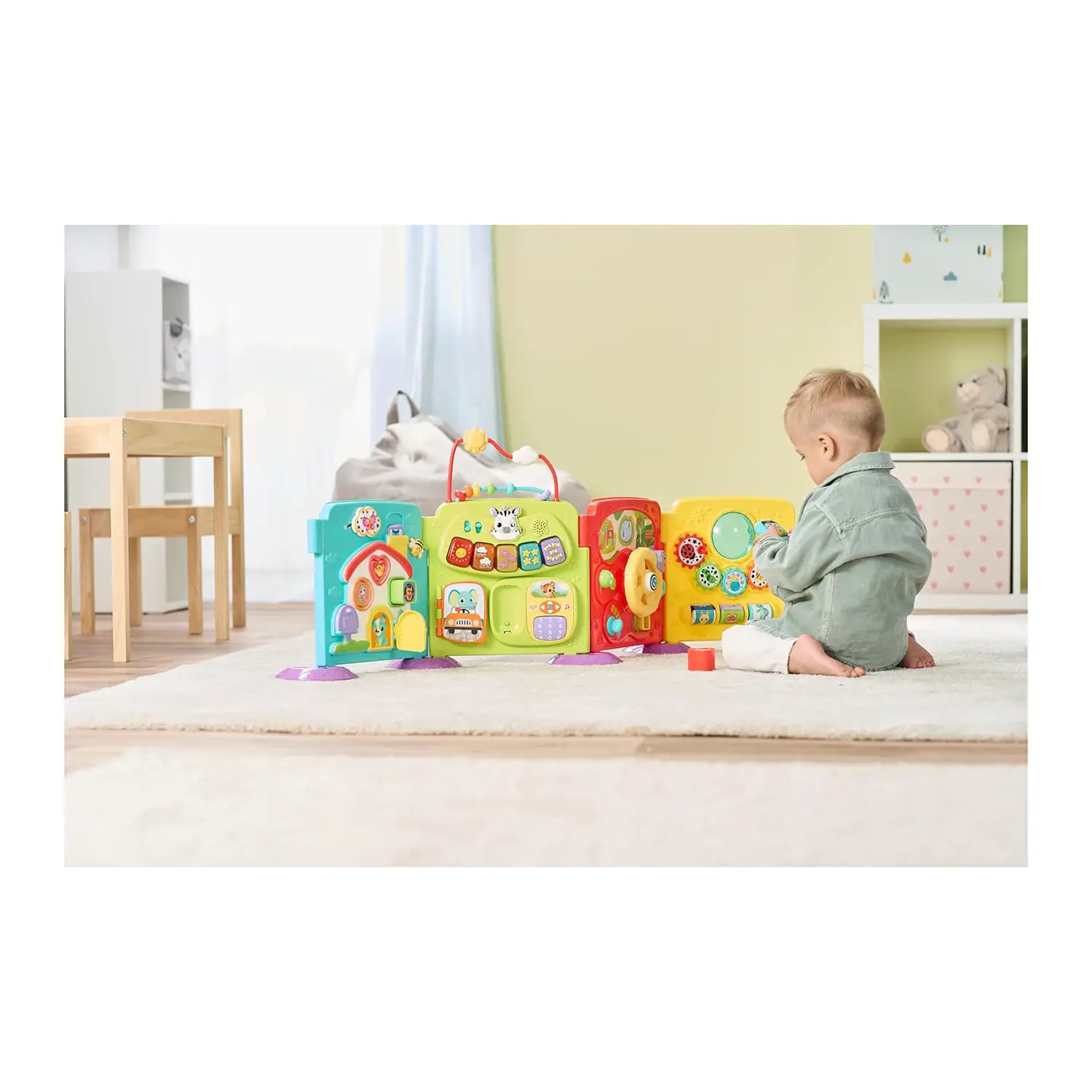 - ✅ Quattro lati di gioco interattivi per sviluppare la motricità fine e stimolare la curiosità del bambino.