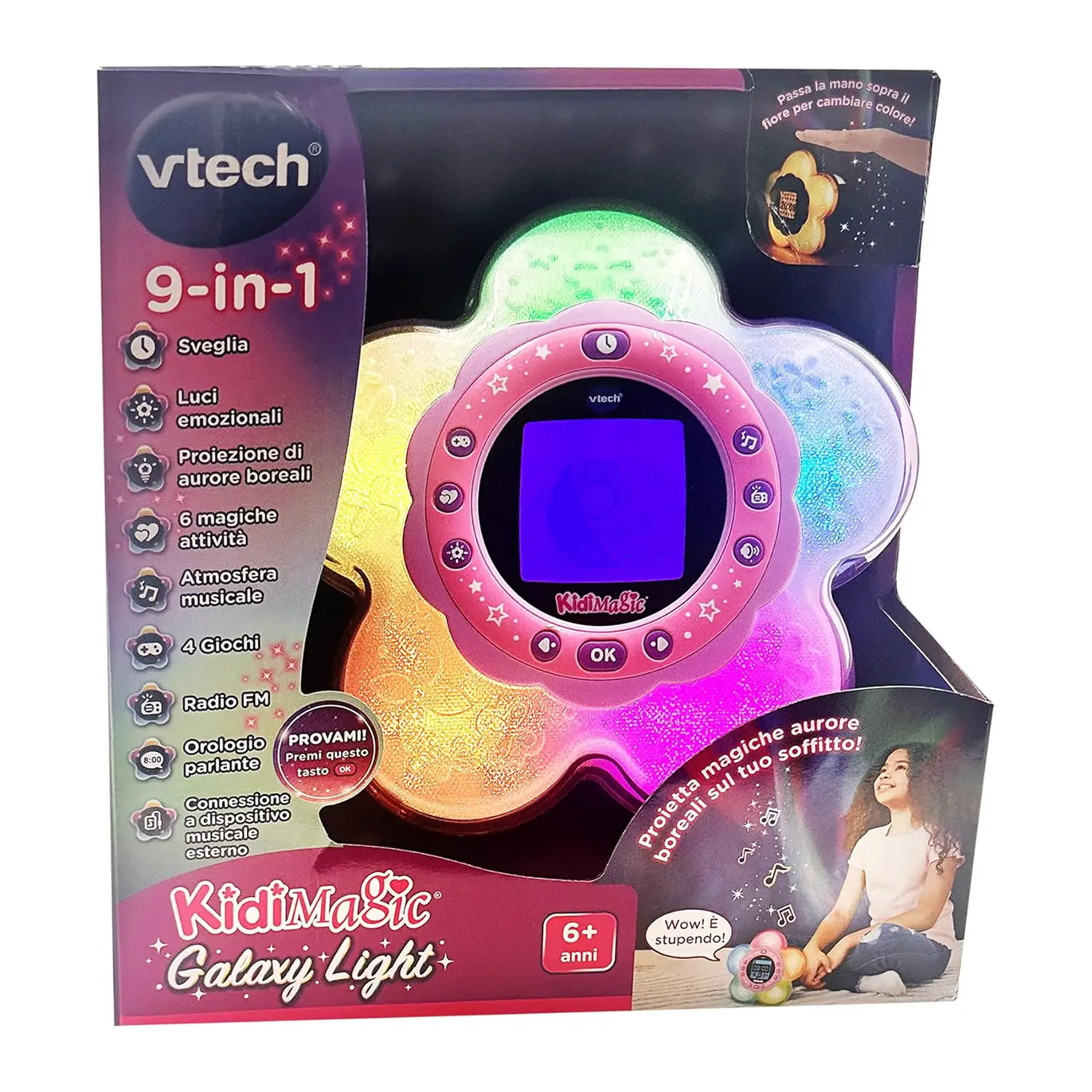 Risvegli magici e personalizzati ogni giorno La VTech KidiMagic Galaxy Light è molto più di una radiosveglia: è un concentrato di magia, musica e colore. Con due sveglie programmabili e 10 temi grafici, permette di personalizzare lo schermo retroilluminato per iniziare la giornata in modo unico e divertente, adatto a bambini dai 6 anni in su.