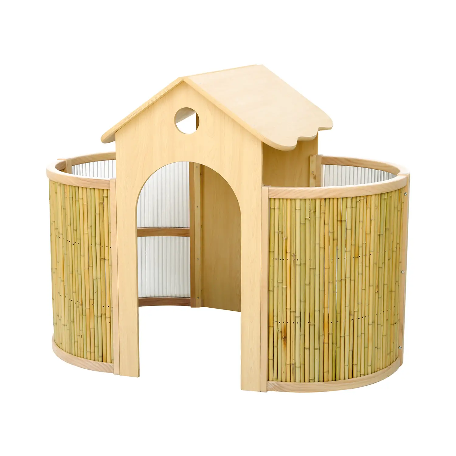 Casetta dei giochi per interni in legno e bambu: un regno magico per i bambini di tutte le età, un rifugio dove potranno giocare, riposarsi e dare sfogo alla loro immaginazione! Favorisce il gioco di ruolo perchè i bambini potranno giocare a fare la casa, il negozio o qualsiasi altra cosa la loro immaginazione suggerisca. Può diventare un luogo speciale dove sentirsi al sicuro e protetti.