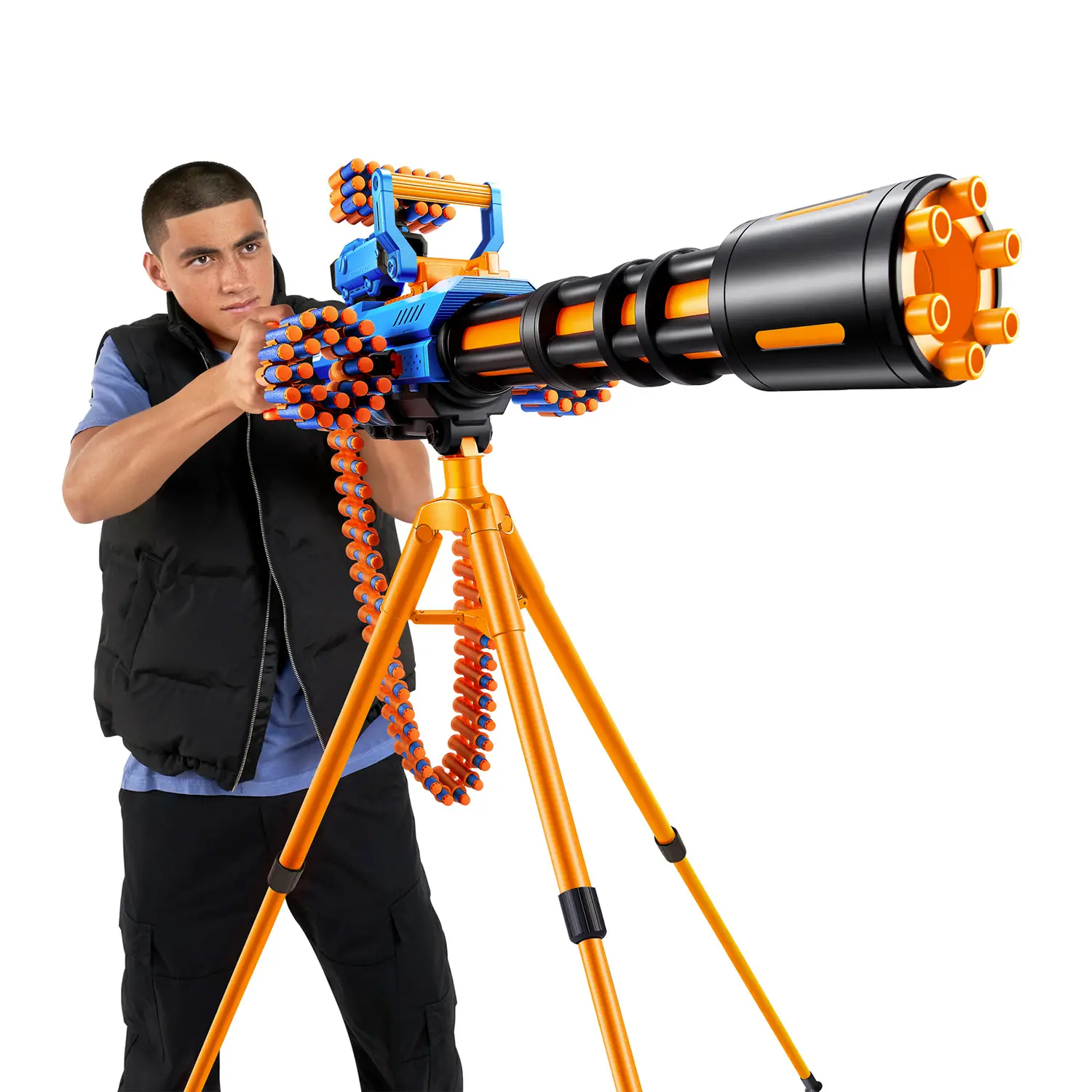 Sistema automatico per prestazioni elevate Dotato di cintura automatica per le munizioni, questo blaster consente un fuoco continuo e senza interruzioni. Può essere caricato con un elevato numero di dardi per mantenere sempre il controllo della sfida.